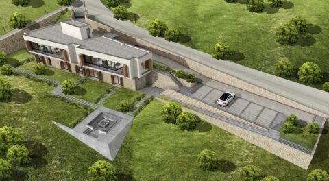 The land is located five-six kilometers south of Izmit Bay, on a hill overlooking the bay view.   It has an area of approximately 7 acres. Property is in the landslide area and the building area suitable for construction is only 250 m2. According to the development plans, the construction boundaries are in the shape of a truncated triangle and site is inclined. It is under the influence of strong northern winds (north and northeast) at a very important time of the year. Southwest winds  are less effective. The land is on the roadside and on a hill. The direction where the northern winds are effective also has a breathtakingly beautiful view of the bay. The most challenging subject of the design may be summarized as creating open spaces that focuses on the spectacular view while at the same time have to protected from the wind.