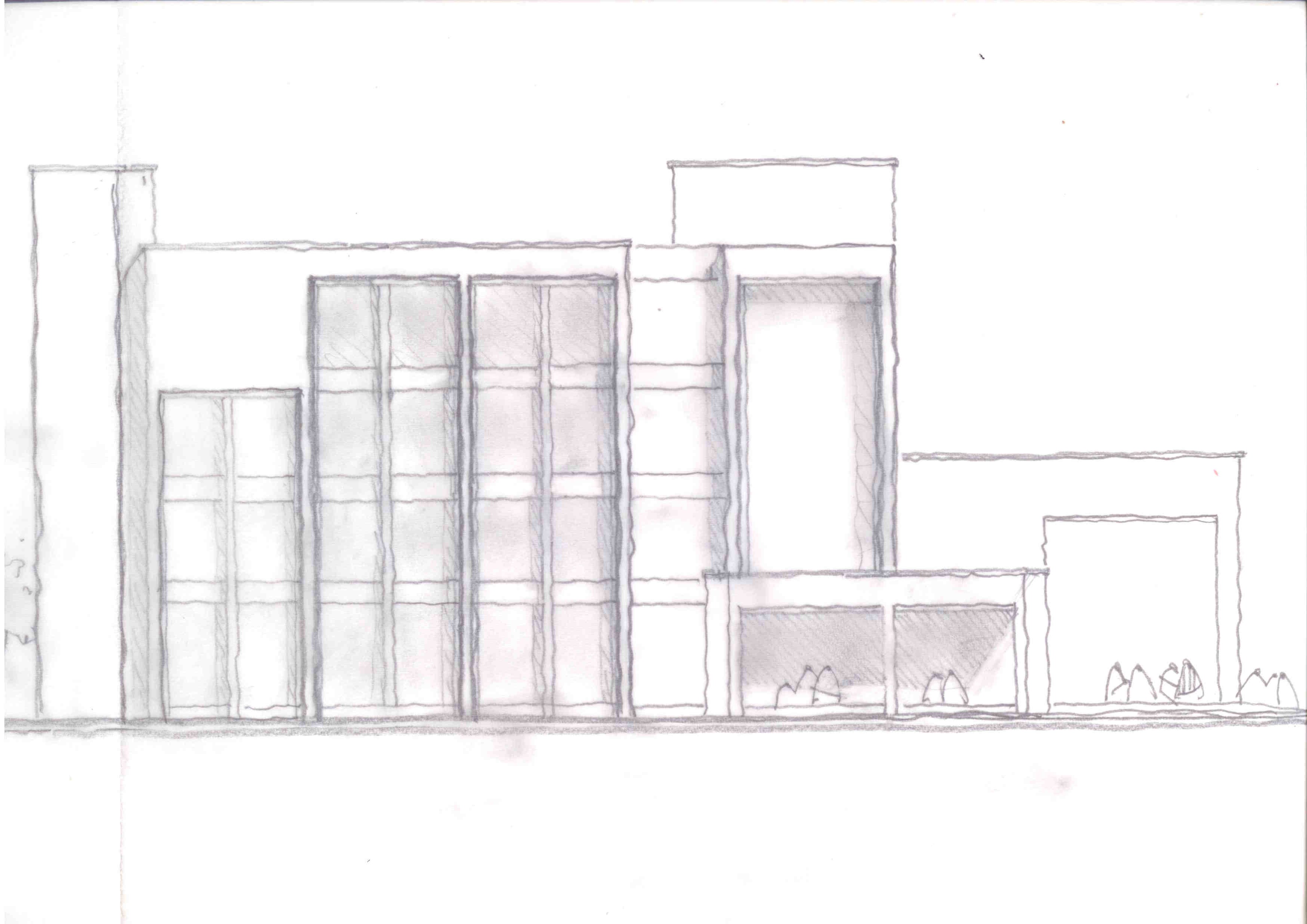 Hospital building is located 15m. away from the main road which hospital entrance is facing to.  Emergency entrance and service acsesses are served from the corner of the site which is intersection point of the main road and the road adjacent to the south west border of the site.  The building for health care facilities are formed mainly  in to two blocks attached each other on east-west axis. On front view there you find low- rise block rendering emergency, administration, policlincs and out patient facilities. The “U” shape high-rise block attached to the south east border of this low-rise block is planned to serve for in patient facilities.  There is one separate  block  for technical services and utility, located 6m. away from the main hospital building complex  towards south-east direction.  Buildings are mainly located on the south-west corner of the site,  inorder to achieve some spare area for future development.  On the north east  part of the site there will be more then 9500sqm  site area which will be enough for an extention building nearly equal to the first phase of the investment.  Extention building has been drawn on the site plan to indicate how it will be and what will be the opportunities if it is extended.