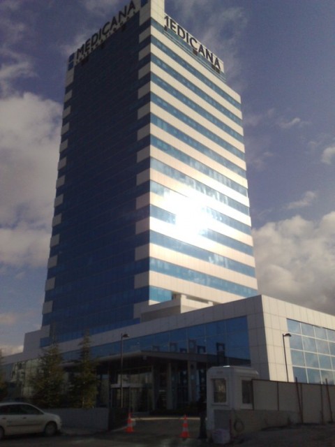 Medicana Hospital is located in Söğütözü district of Ankara. The overall indoors area of the private hospital is 20.000 m². The total inpatient bed availability of the private health care institute is 146. Medicana Hospital comprises of Radiology, clinical laboratory, pathology laboratory, angiography, endoscopy, nuclear medicine center, radiation oncology, surgical procedure rooms, KVC surgery rooms, internal disease intensive care, surgical intensive care, KVC intensive care, coroner intensive care, neonatal intensive care, emergency unit, dialysis, policlinics, IVF (in vitro fertilization) center, delivery room, inpatient services, VIP inpatient service, gynecology inpatient service with LPDR room, cafeteria, mess hall, administrative units, central sterilization unit, physical therapy and rehabilitation center, laundry, call center and indoors parking lot sections.