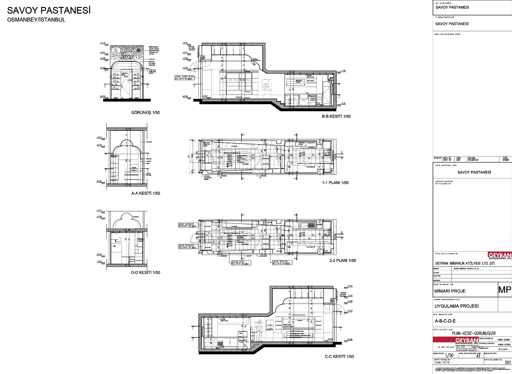 Branch of historical Savoy Patisserie project is the redesinging of existing store of 25 sqm into new patisserie. Patisserie is on the Halaskargazi Boulevard very near to Osmanbey cross in the direction of Taksim.