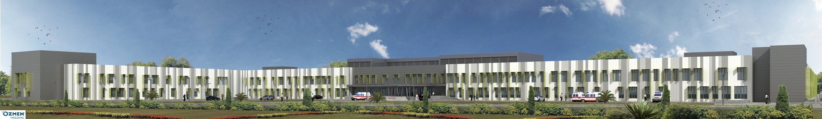 The hospital building is divided into two by the hospital main corridor on the northwest-southeast axis. The main corridor of the hospital is designed to be the main entrance of the hospital on one end and the personnel entrance on the other and to form a two-story high atrium at the main entrance.